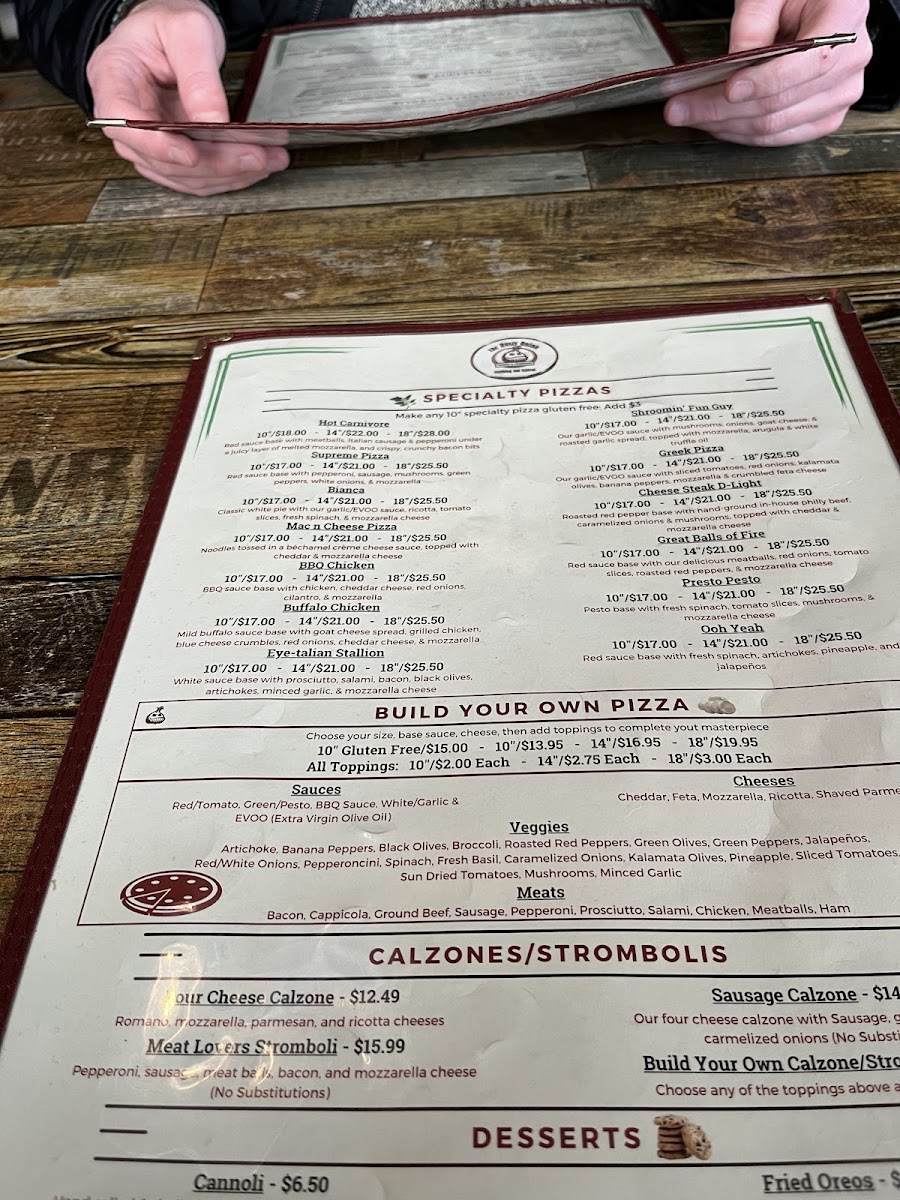 White sauce base with prosciutto, salami, bacon, black olives, artichokes, minced garlic, and mozzarella cheese 10" • 17.99 / 14" • 21.99 / 18" • 25.99